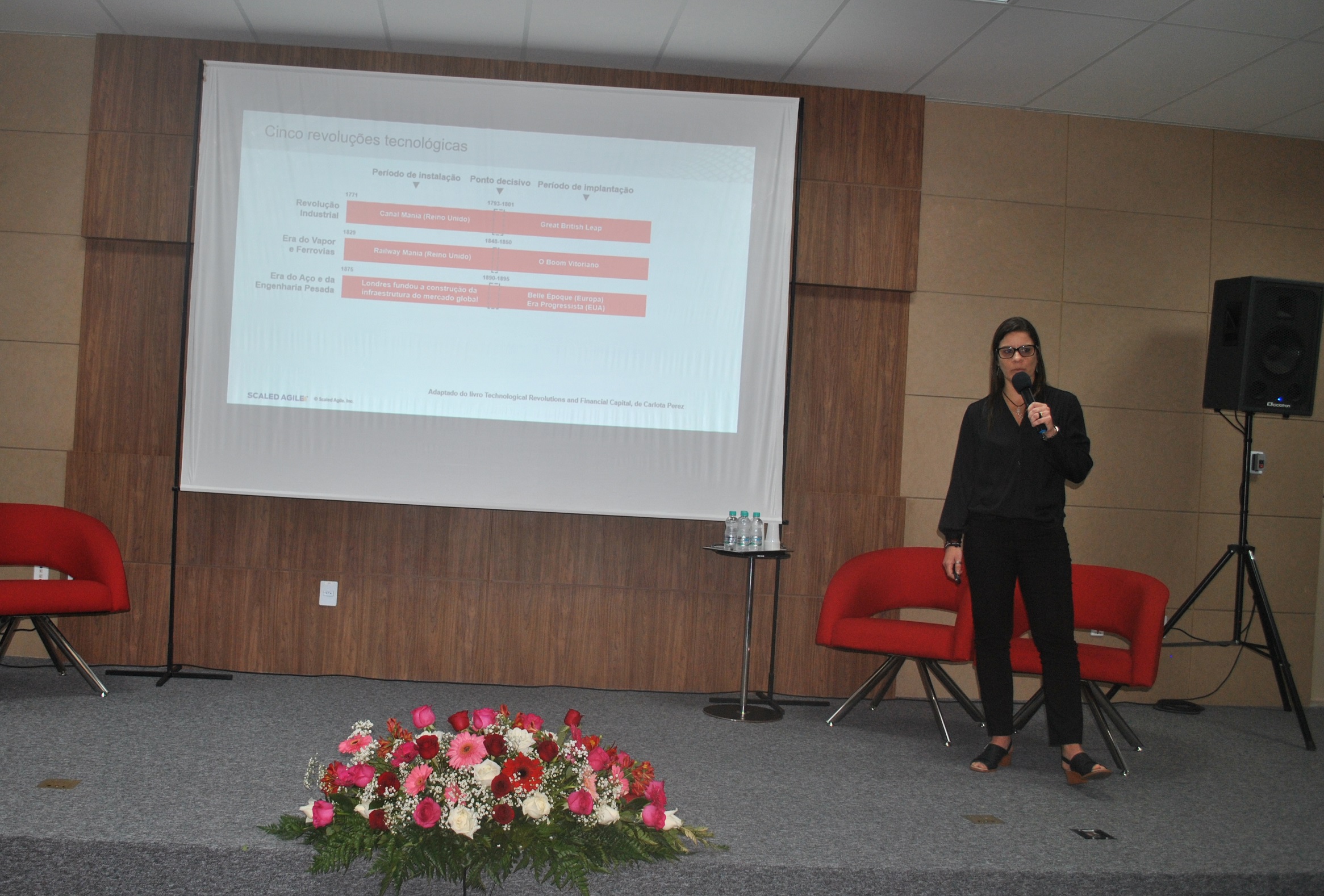 A primeira palestra apresentou o tema “Scale Agile: Frameworks de Desenvolvimento” e foi ministrada pela Head Digital da Spassu, Flávia Gerhardt. Ela mostrou como é necessário haver uma integração entre os times de desenvolvimento e os clientes (internos ou externos), para a criação de sistemas e plataformas apresentar um desempenho dentro ou acima das expectativas.
