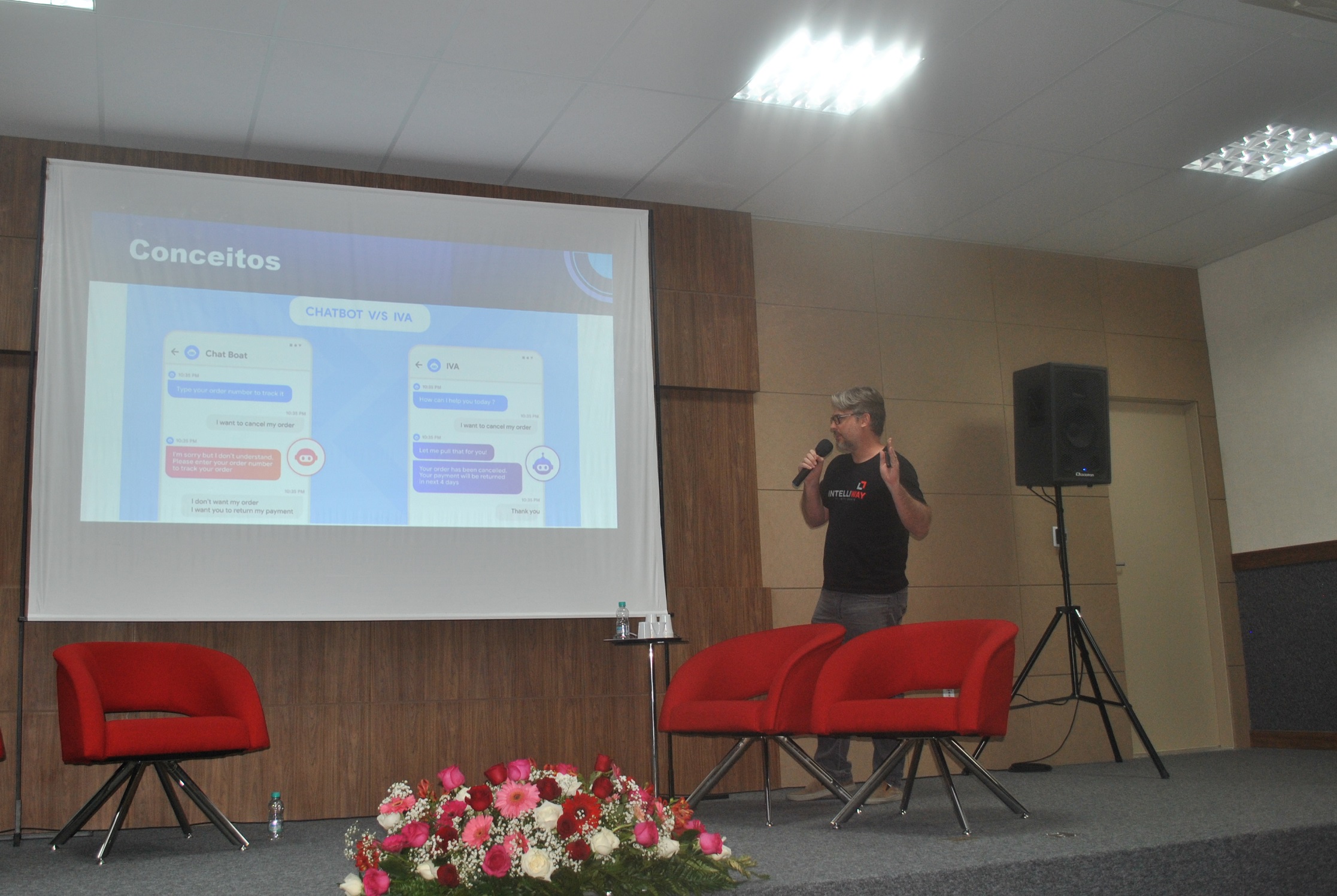 O diretor de Tecnologia e Head de Inteligência Artificial da Intelliway, Frederico Comério, ministrou a palestra com o tema “Assistente Virtual Inteligente e Plataformas Cognitivas”. Na atividade, ele apresentou a evolução dos chatbots nos últimos anos e como as empresas podem adotar essa ferramenta para obter uma comunicação mais ágil e eficiente com o público-alvo.